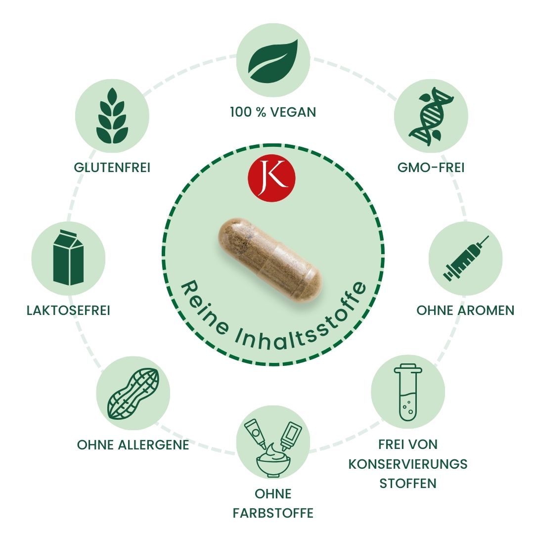 Gemäß dieser Hydro-Kolloidale-Sensibilisierung werden alle Natur- und Mikronährstoffe mit einer pflanzlichen Matrix verbunden, sind somit besser geschützt und daher im Körper höchstmöglich bioverfügbar.
